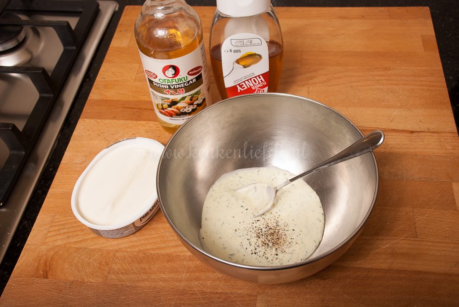 - 1 el Turkse yoghurt, crème fraîche kan ook