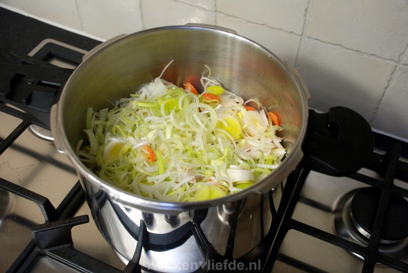 - 350 g schoongemaakte prei, in dunne ringen gesneden