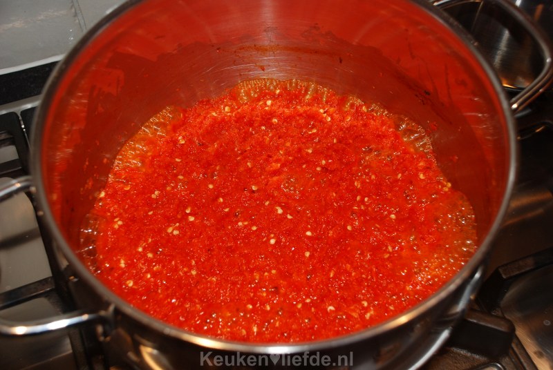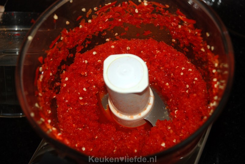 - 400 g rode pepers (hoe kleiner de peper hoe heter!)