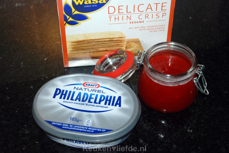Het komt zelden voor dat ik een gerecht niet ken, maar ‘jelly pepper’ was er zo een! Na wat speurwerk op internet kwam ik erachter dat jelly pepper – ook wel ‘Jalapeno pepper jelly’ genoemd – ontzettend geliefd is in Amerika. Het wordt daar vaak met wat roomkaas op crackers gegeten, maar ook als ingrediënt gebruikt om extra pit aan gerechten te geven. Deze jelly (jam) is ondanks de hoeveelheid rode pepers niet loeiheet, maar laat wel een ‘serious kick’ achter in je mond.