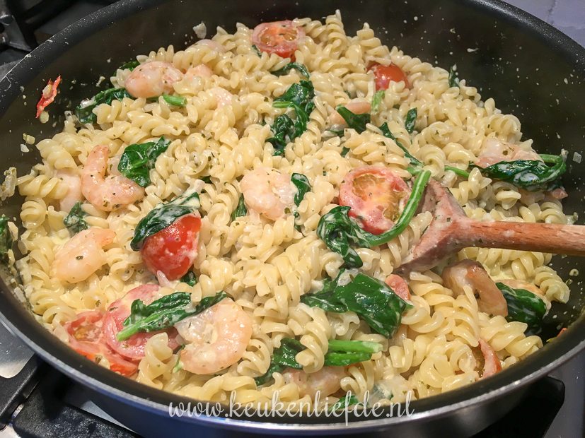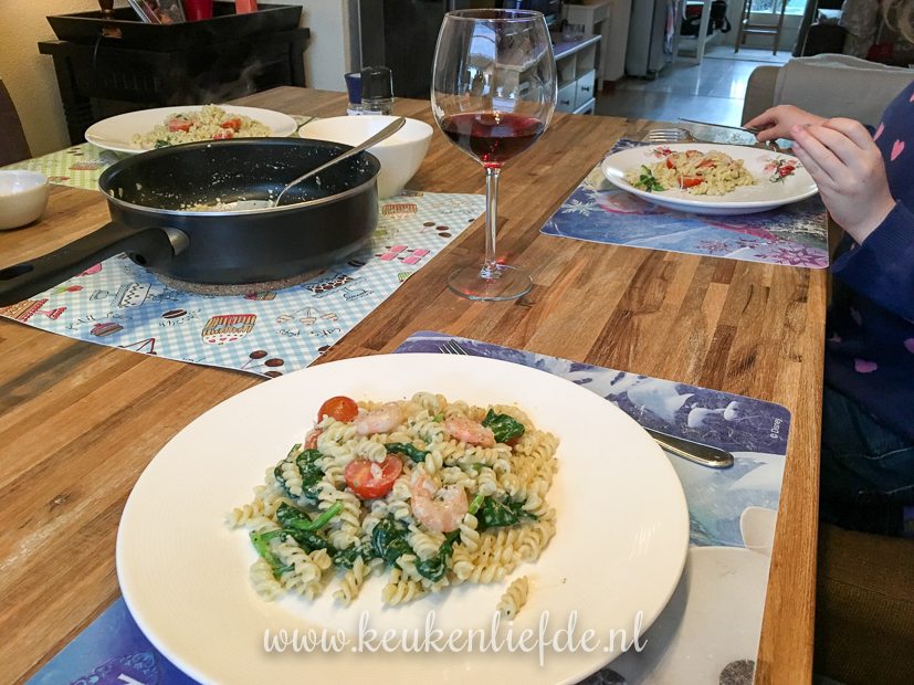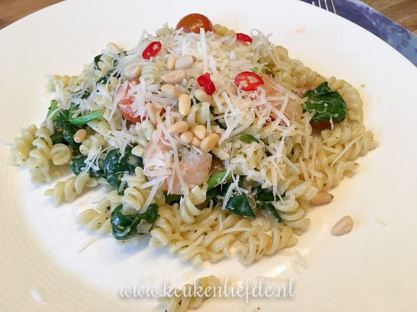 Dit trouwens ook: pasta met garnalen, spinazie en pestoroomsaus. Ik moet echt vaker recepten maken van KeukenLiefde. Die zijn vet lekker! 🙂