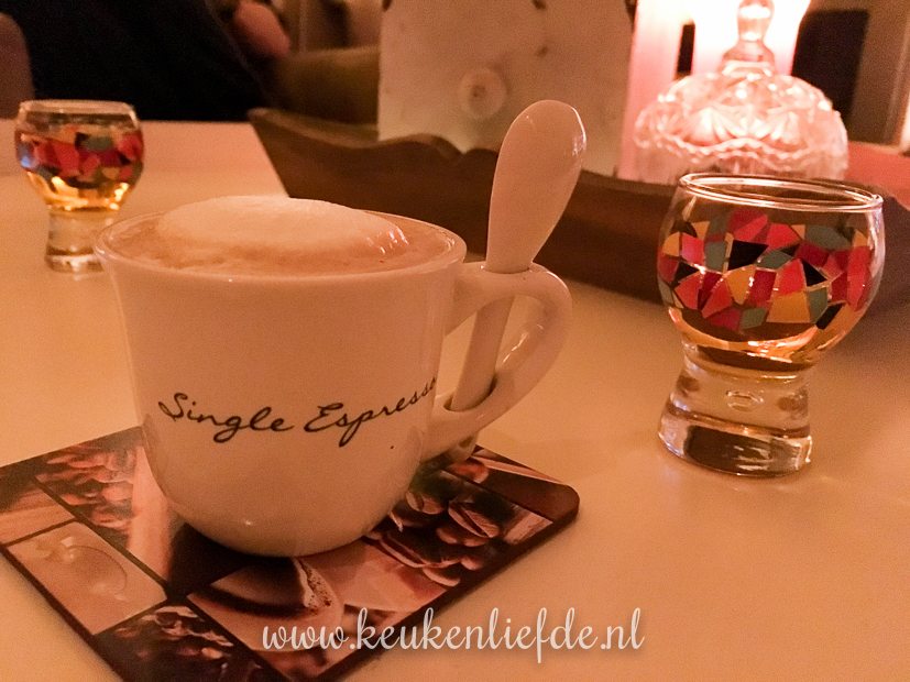 Ik hoef niet te koken vandaag, want er is nog zuurkool-ovenschotel. Johan en ik genieten ’s avonds van een kopje espresso met likeur.