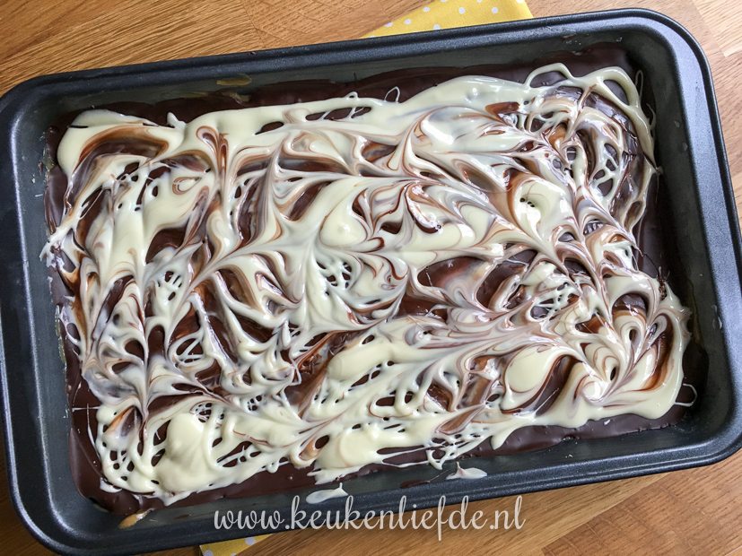 - Een mislukte witte chocolade swirl. De pure chocolade was al opgedroogd en toen werd ik nijdig.