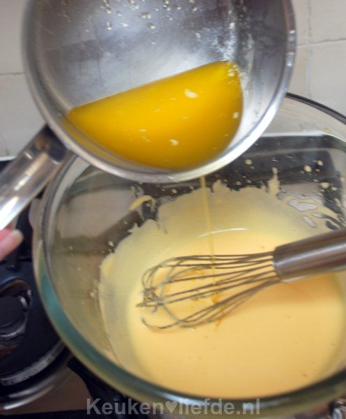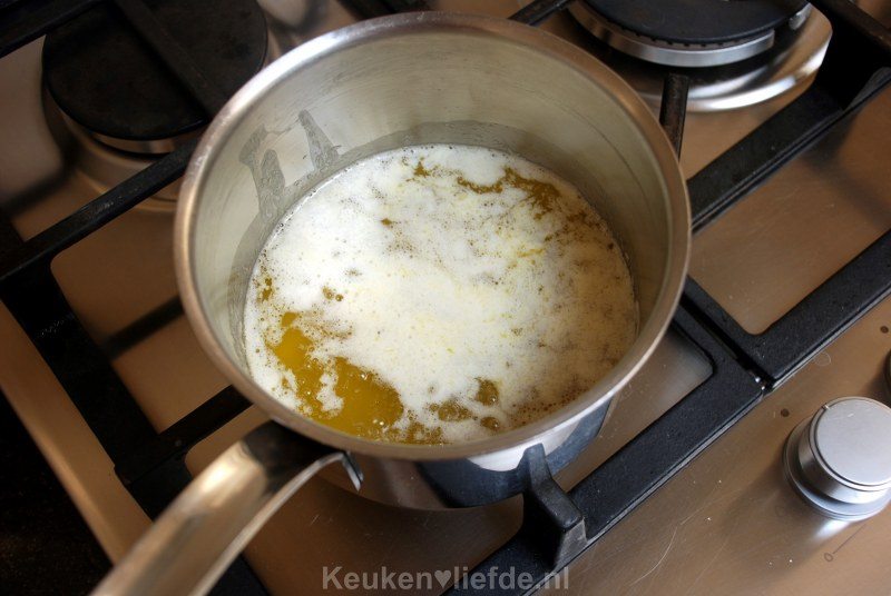 Smelt de roomboter in een pannetje op laag vuur en schep het bovendrijvende eiwit weg.