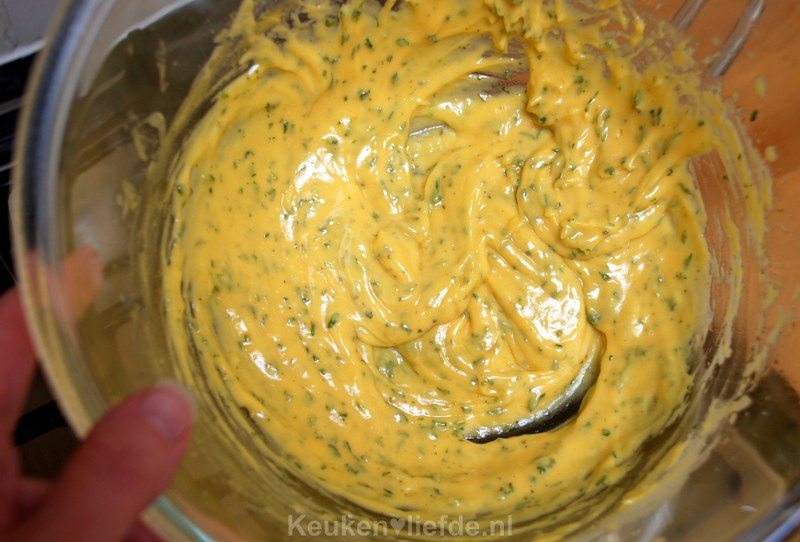 Eerdere pogingen van mij om de saus warm te houden en later te serveren mislukten, omdat de saus ging schiften (tips?). Zorg dus dat je de saus pas (af)maakt als het vlees bijna goed is en de frietjes gebakken worden.