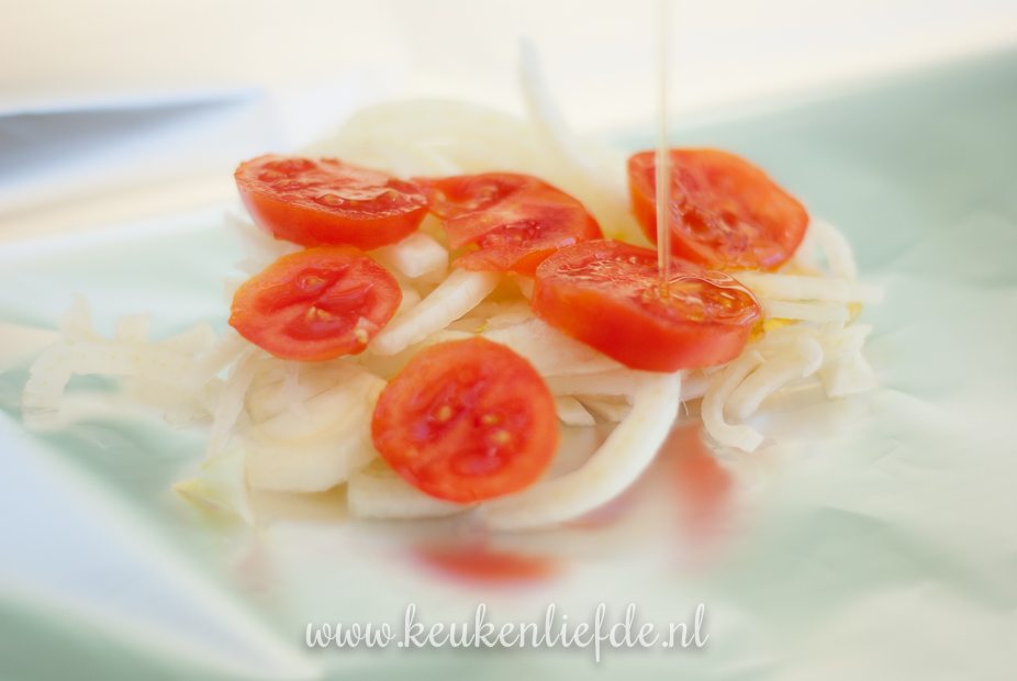 Eenvoudig en snel te maken vispakketje met frisse venkel en tomaat voor op de barbecue. Lekker met gekookte of gebakken krielaardappels!