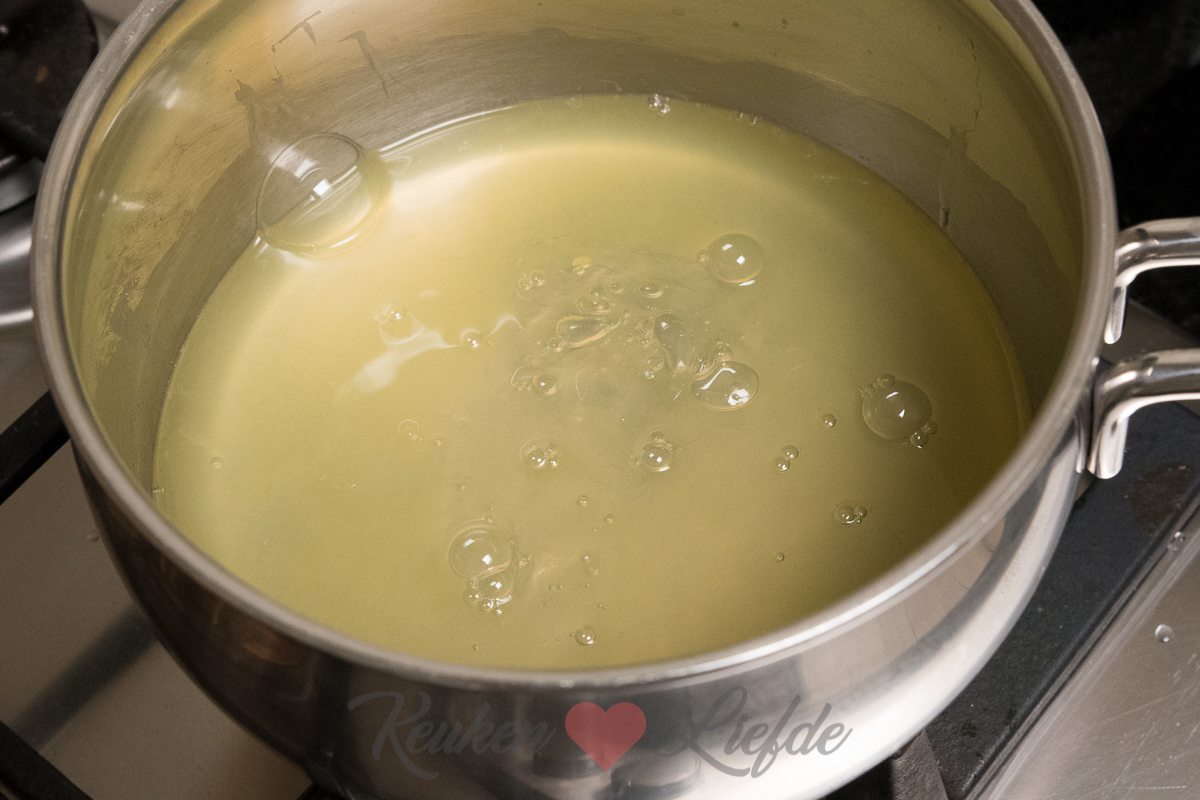 Misschien is het een idee om de lange vingers eerst te dippen in het citroen mengsels. Ik heb heel voorzichtig gegoten maar grotendeels van de lange vingers kwamen naar boven drijven.