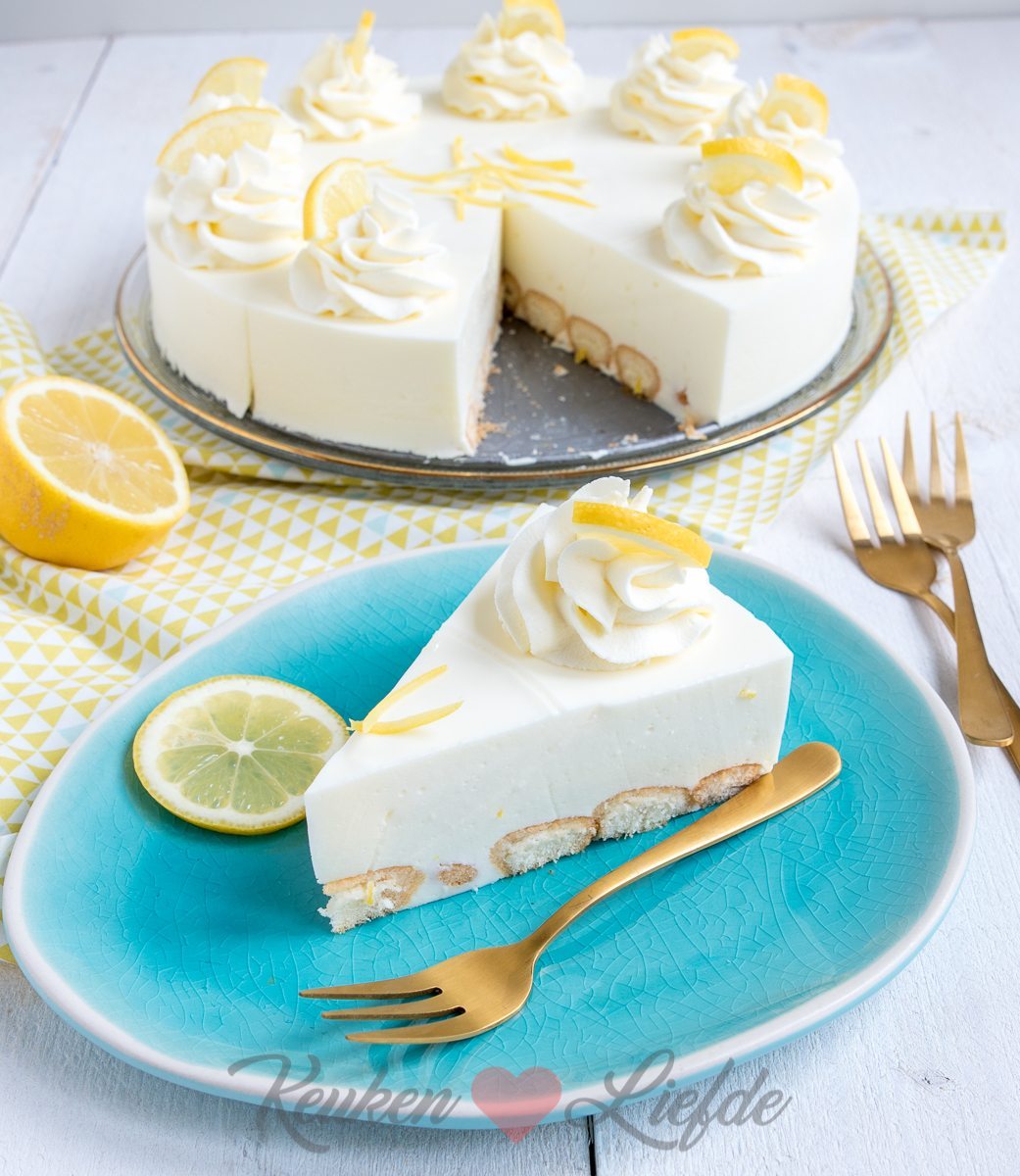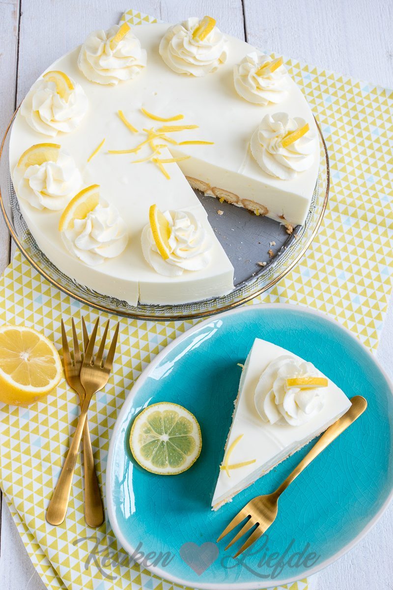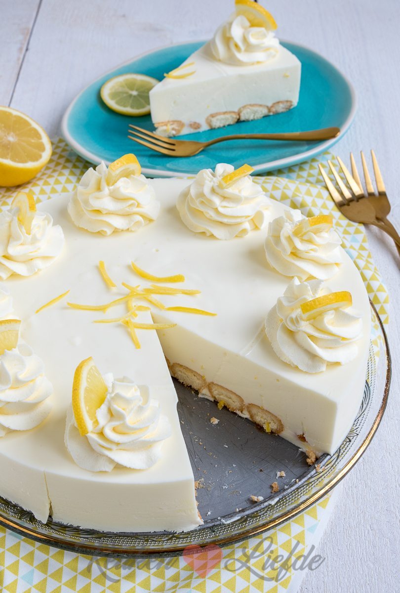 Vandaag de taart gemaakt met 8 blaadjes gelatine en zonder limoncello.
