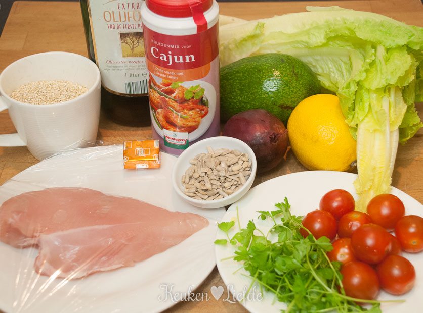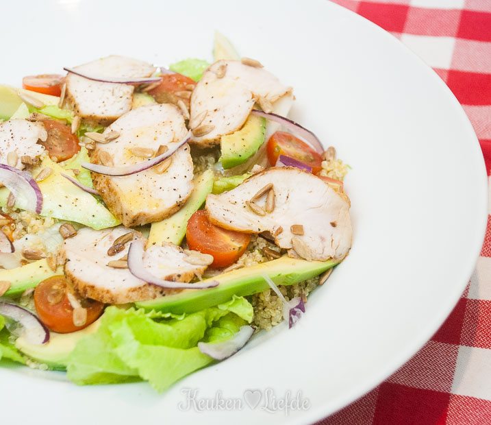 Alweer een maaltijdsalade hoor ik je denken… Uhm jazeker, want met maaltijdsalades kun je gewoon alle kanten op. I love it! Ergens in december vorig jaar (jee, wat lijkt dat alweer lang geleden) na een drukke doordeweekse dag wilde ik ’s avond iets makkelijks en gezonds koken. Na een korte speurtocht door de koel- en kelderkast scharrelde ik de ingrediënten bij elkaar voor deze maaltijdsalade met quinoa, kip en avocado. Ik was eigenlijk niet van plan om er foto’s van te maken (soms wil je namelijk ook weleens ‘gewoon’ koken), maar toen ik de ingrediënten bij elkaar zag liggen wist ik meteen dat dit een topper zou worden. En oh boy, wat kreeg ik gelijk. Zet mij maar elke dag zo’n bakkie sla voor!