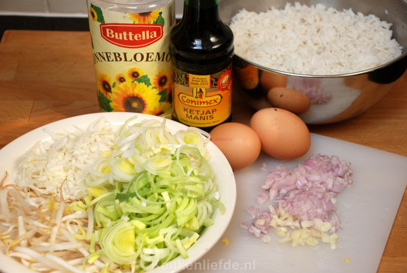 Ik ben echt dol op deze eenvoudig te maken nasi goreng met reepjes omelet! Ik maak altijd een grote hoeveelheid zodat we er twee dagen van kunnen eten.