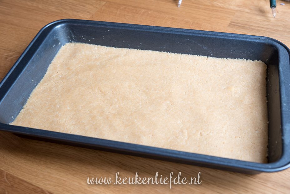 Niet meer boter toe voegen, de bodem goed aandrukken met de bodem van een glass met een platte bodem en daarna de tweede laag toe voegen.