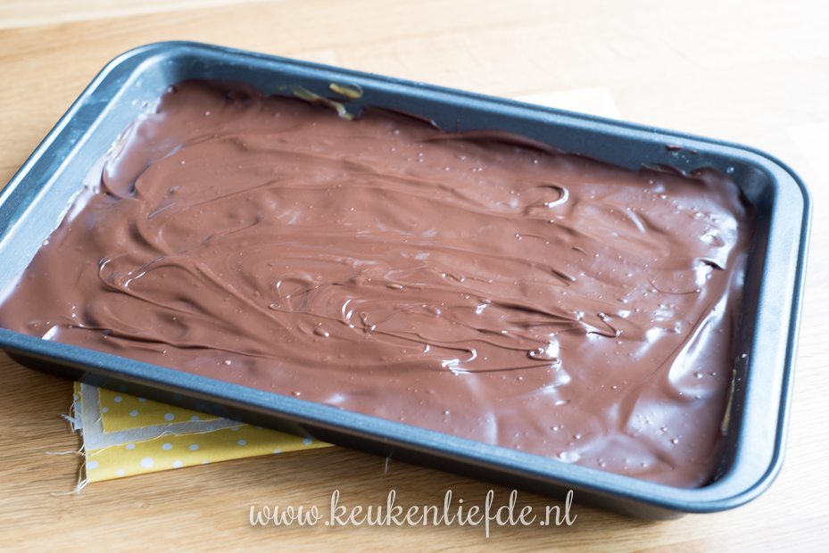 Zet de bakvorm op een koele plek zodat de chocolade op kan stijven. Snijd de Millionaire’s shortbread in kleine blokjes.