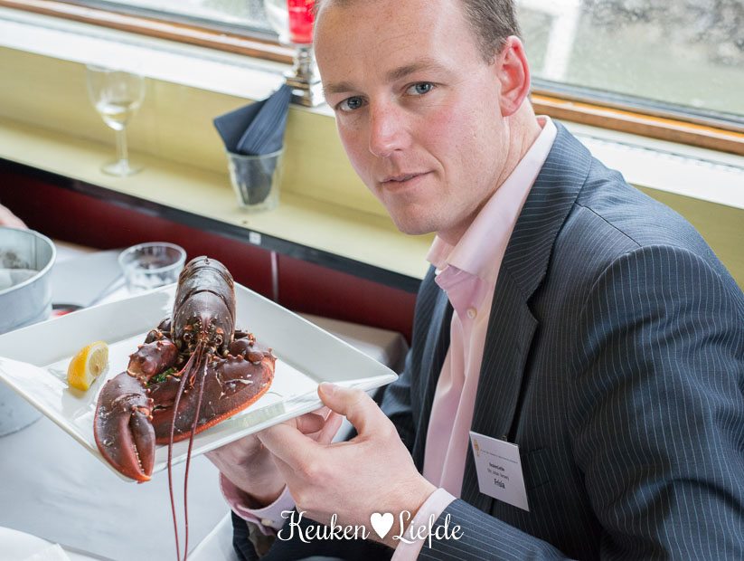 Terug van het winderige en natte achterdek is het dan eindelijk tijd om de Zeeuwse trots te proeven, uiteraard onder het genot van een glas speciale kreeftenwijn.