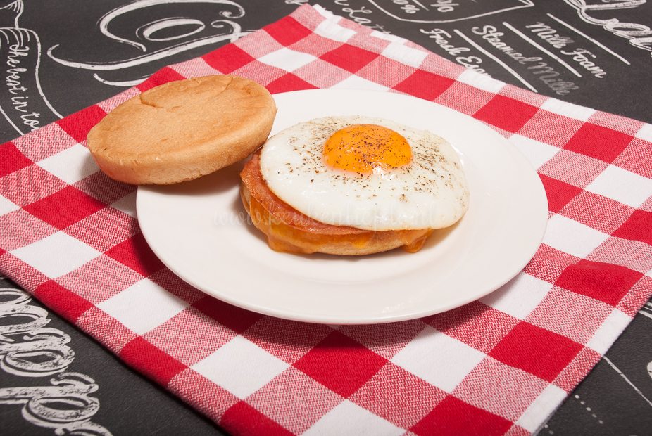 Doet deze ontbijtmuffin met ei en bacon je al ergens aan denken? Juist, de McMuffin van McDonald’s! Ik moet eerlijk bekennen dat ik die nog nooit gegeten heb, maar ik vond het wel een leuk idee. Ik ben dol op ei en bacon in de vroege morgen. Hoewel ik de McMuffin dus nog nooit geproefd heb, liet ik me erdoor inspireren voor dit ontbijt: een geroosterde beschuitbol belegd met kaas, gebakken ei en een plakje bacon. Wat wil een mens nog meer?