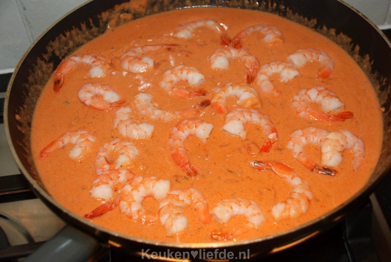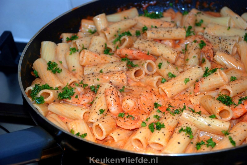 Pasta met garnalen en cognac-tomatenroomsaus