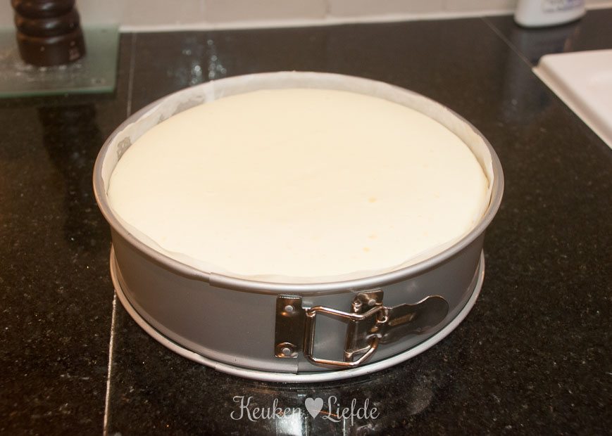 Hij staat NU in de oven :-). Heb als extra toevoeging nog 200 gr gesmolten witte chocolade door het cheese-mengsel gegoten. Ben benieuwd!