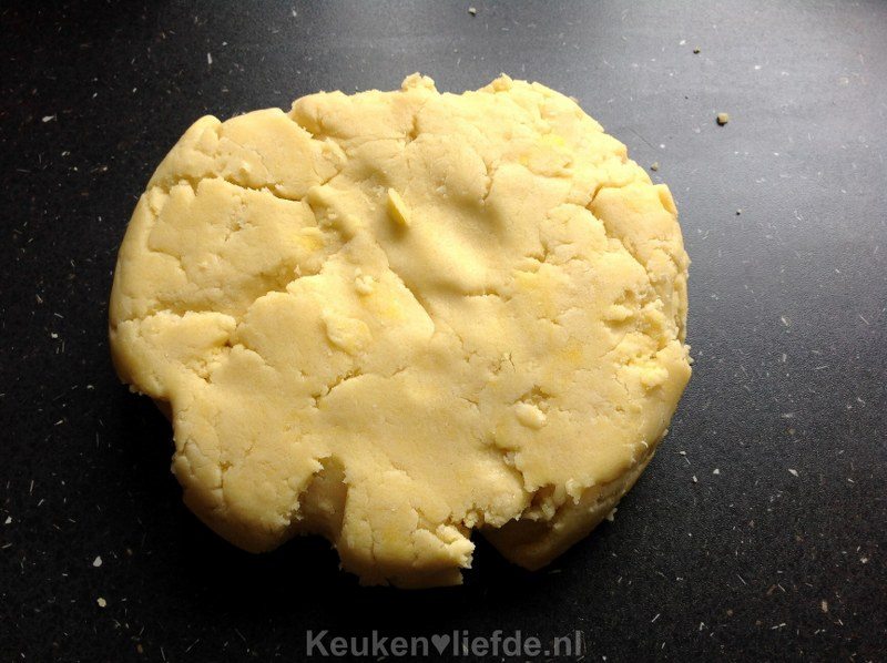 Kneed met je vingertoppen de boter door de bloem, totdat de boter bijna is opgenomen. Voeg een ei toe en kneed verder totdat je een stevige, gladde bal hebt.