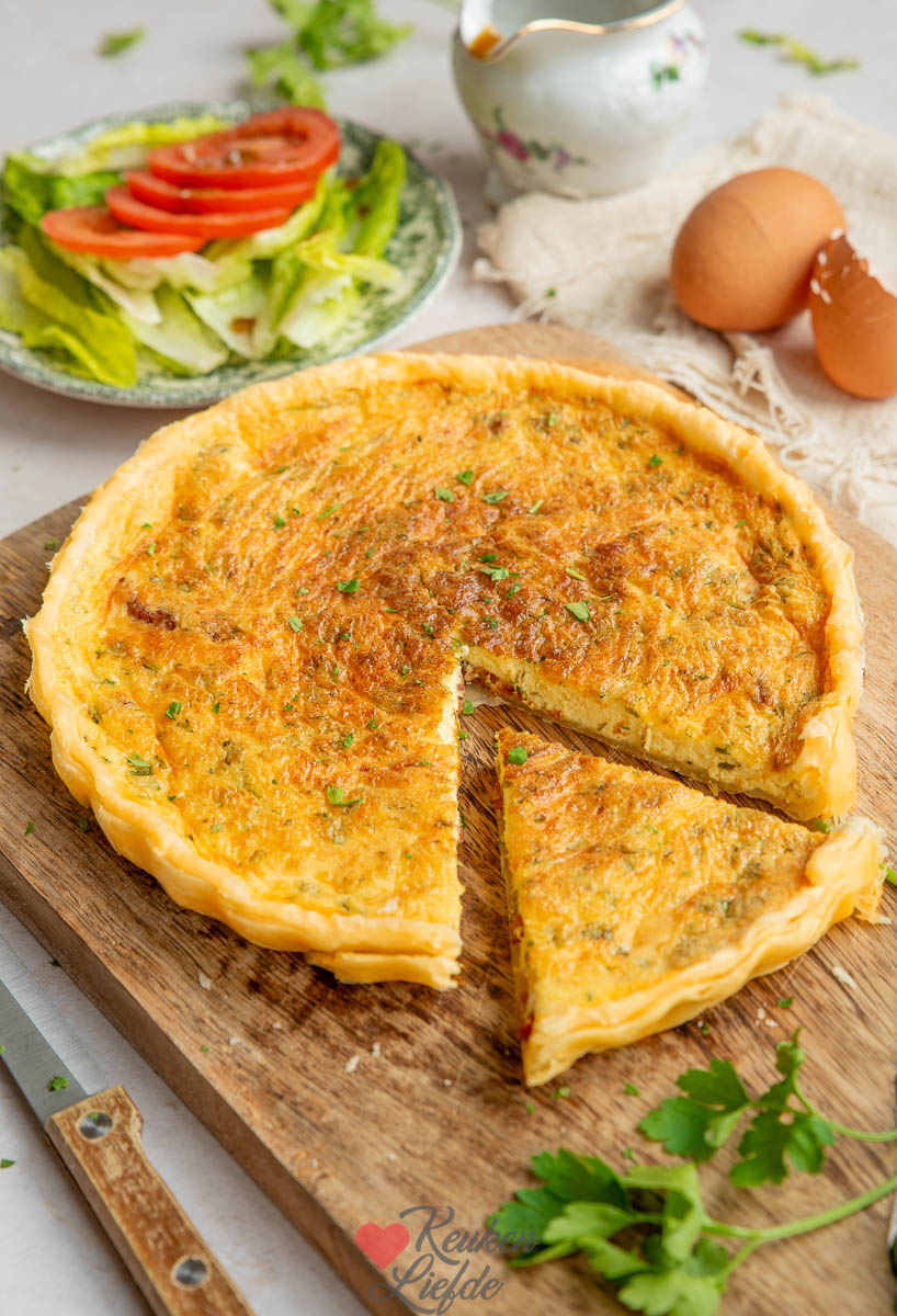 Quiche lorraine is een echte Franse klassieker: een hartige taart van korstdeeg of bladerdeeg met spekjes en romige ei-vulling. Heerlijk als lunch of hoofdgerecht, eventueel met een salade erbij.