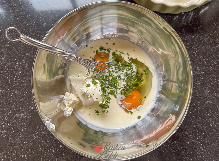 Je kunt de bodem maken van een rol kant-en-klaar quiche- of hartig taartdeeg, plakjes bladerdeeg uit de diepvries, of je kunt de bodem zelf maken van korstdeeg. Zelfgemaakt korstdeeg geeft een wat stevigere korst en bak je eerst blind voor. Kant-en-klaar quichedeeg of plakjes bladerdeeg hoef je niet blind voor te bakken.