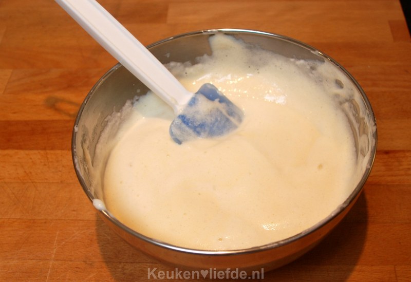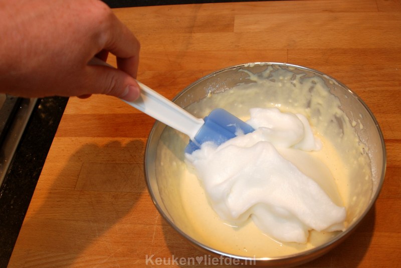 Klop in een andere kom de eiwitten stijf en spatel ze luchtig door het beslag.
