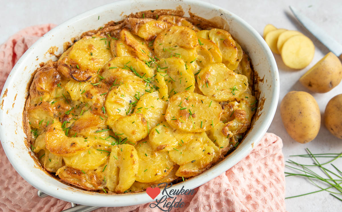 Aardappel tortilla ovenschotel. Een leuke variant op de klassieke, Spaanse aardappeltortilla is deze aardappel tortilla ovenschotel. Een heerlijke ovenschotel met gebakken aardappelschijfjes en ei. Lekker als onderdeel van het hoofdgerecht met een stukje vis, kip of vlees en groenten erbij. Voor dit recept heb je geen pan nodig. De oven doet al het werk!