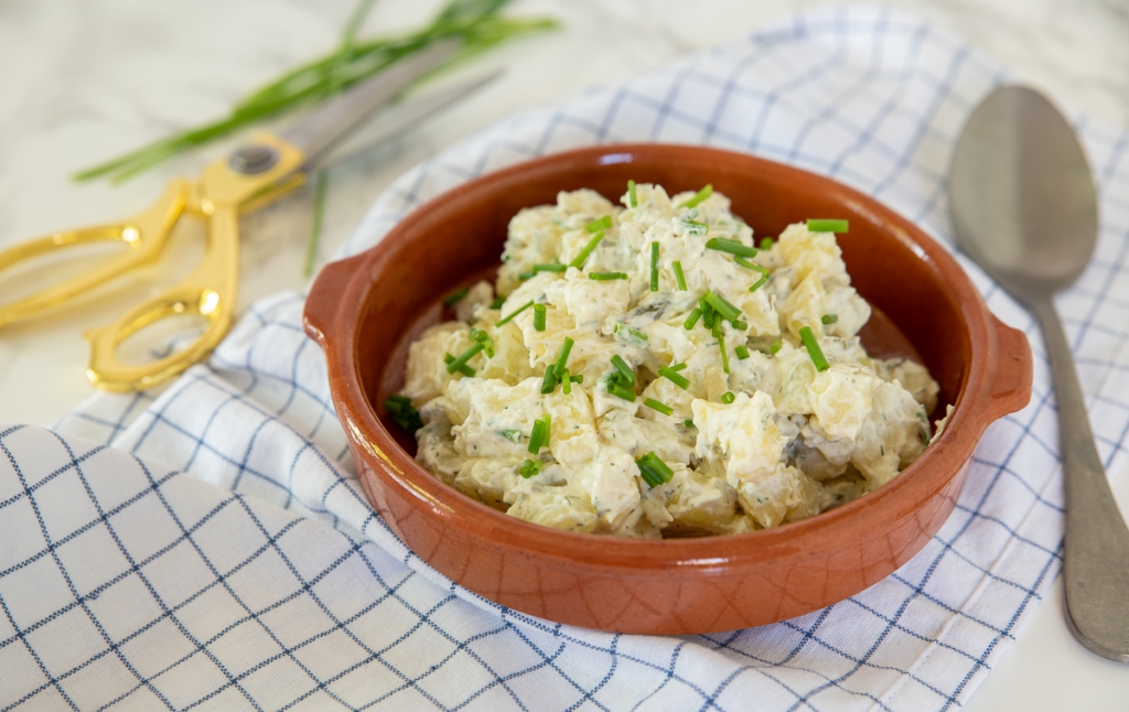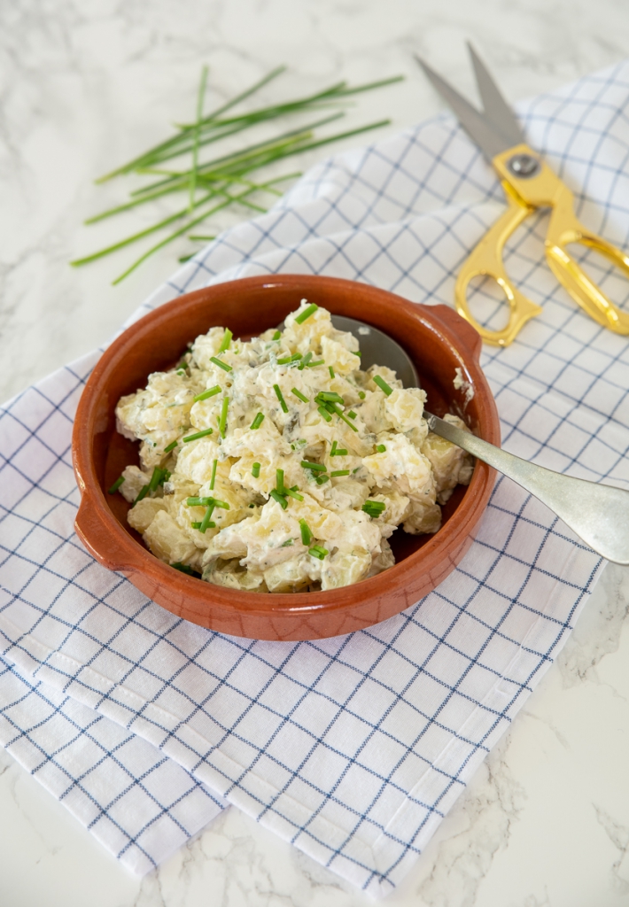 Deze aardappelsalade is heerlijk romig door de crème fraîche. Het kleingesneden augurkje zorgt voor een lekkere bite en een frisse smaak. Ook verse tuinkruiden mogen niet ontbreken! Ik gebruik dille en bieslook, die passen hier heerlijk bij. Enjoy!