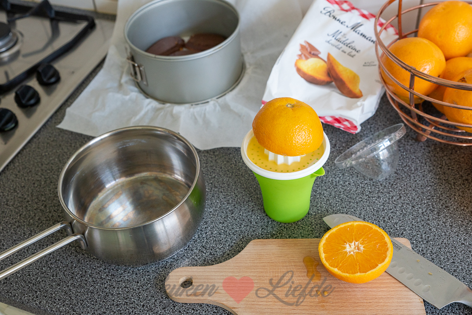 Week de blaadjes gelatine circa 10 minuten in een kom met koud water. Vet de springvorm in met wat olie of boter. Ik beklede de bodem met bakpapier maar dit is niet nodig.