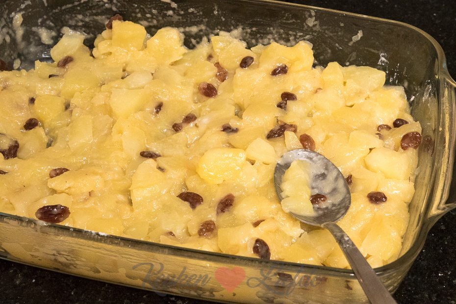 Omdat de appels gebakken én gebonden worden met maizena of custard hoef je niet bang te zijn voor een zompige bodem en is het gebruik van paneermeel overbodig.