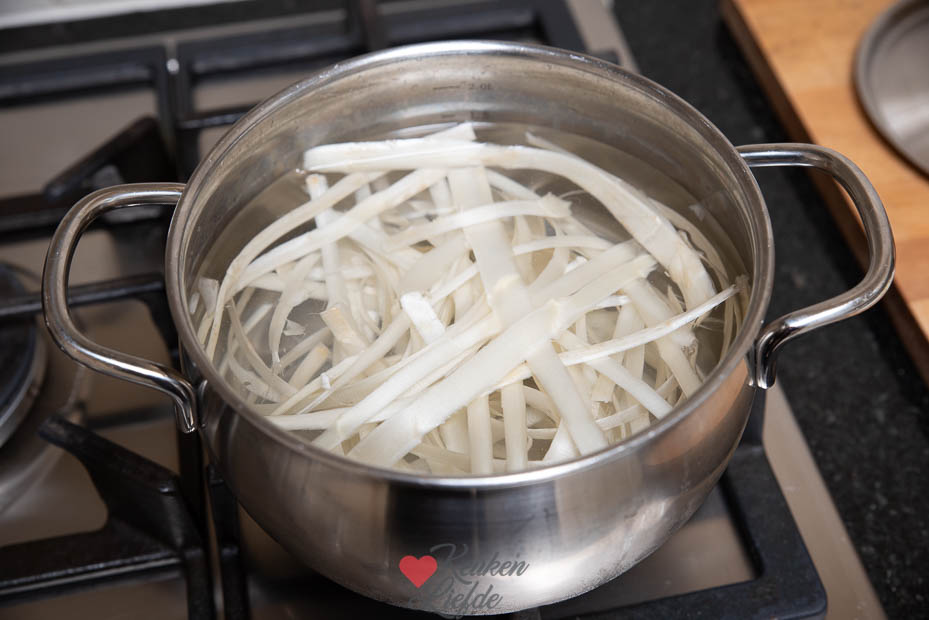 Serveertip! Ook lekker met fijngehakt, hardgekookt ei en reepjes ham als garnering.