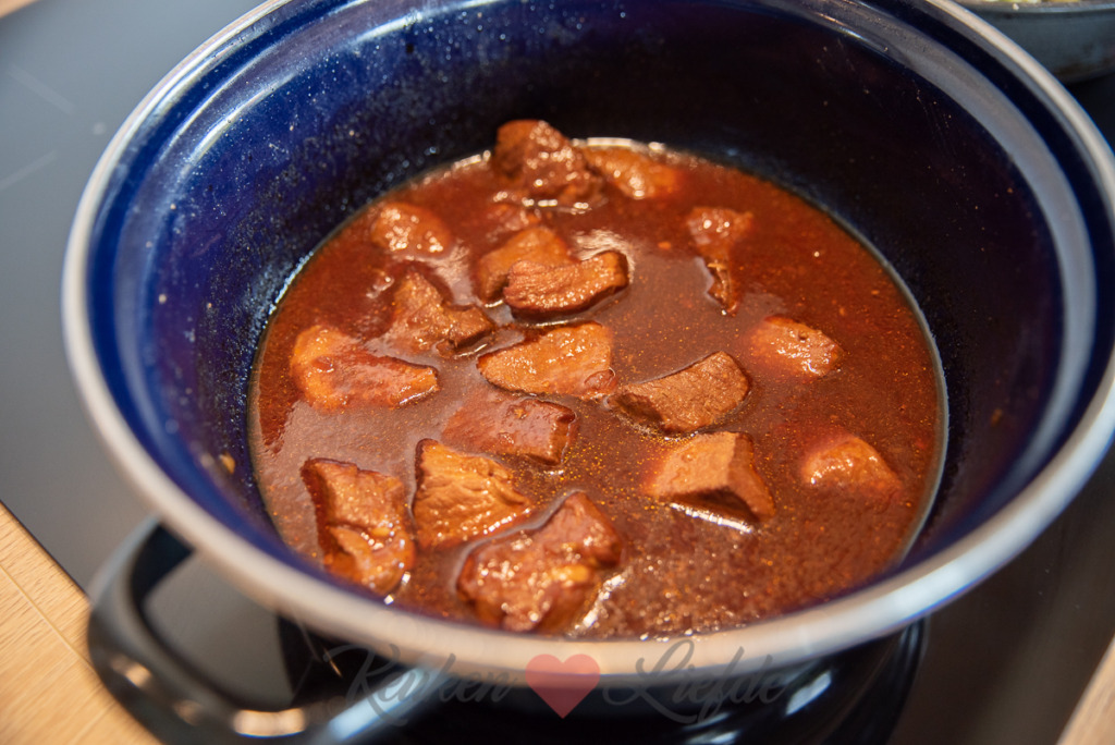 - 500 g hamlappen, in niet te kleine blokjes gesneden (haal van tevoren uit de koelkast om op kamertemperatuur te laten komen)