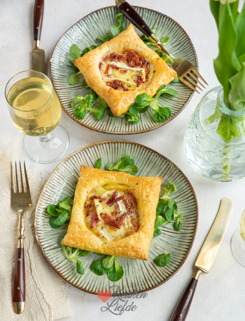 - Bestrijk het bladerdeeg met ei en bak circa 11 minuten in het midden van de oven, of tot ze goudbruin zijn.