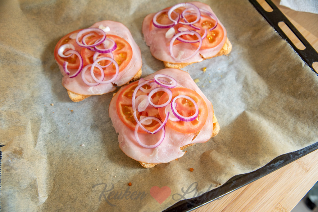 Is het al lunchtijd? Deze broodsnacks uit de oven zijn zo gemaakt en je kunt er eindeloos mee variëren. De combinatie van pittige sambal, ham en kaas, tomaat en ui die ik hier gebruik is heerlijk, maar je kunt ook andere ingrediënten uit je koelkast gebruiken. Zo zijn reepjes paprika en plakjes champignon ook lekker, of vervang de ham eens door salami. Je kunt deze broodsnacks ook als hapje serveren, snijd ze dan diagonaal doormidden of in vieren. Lekker met een drizzle van zoete chilisaus.