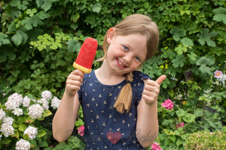 Het warme zomerweer is helaas ver te zoeken in Nederland, maar deze aardbeienijsjes hebben op mij hetzelfde effect als zonnestralen: ik word er vrolijk van! Omdat dochterlief stond te popelen om dit recept te maken gaf ik haar vrij spel. Ze maakte deze aardbeienijsjes lekker fris met een vleugje limoen en gaf ze een extra zoetje met een kneepje honing. Heerlijk! Missie aardbeienijsjes met vlag en wimpel geslaagd!