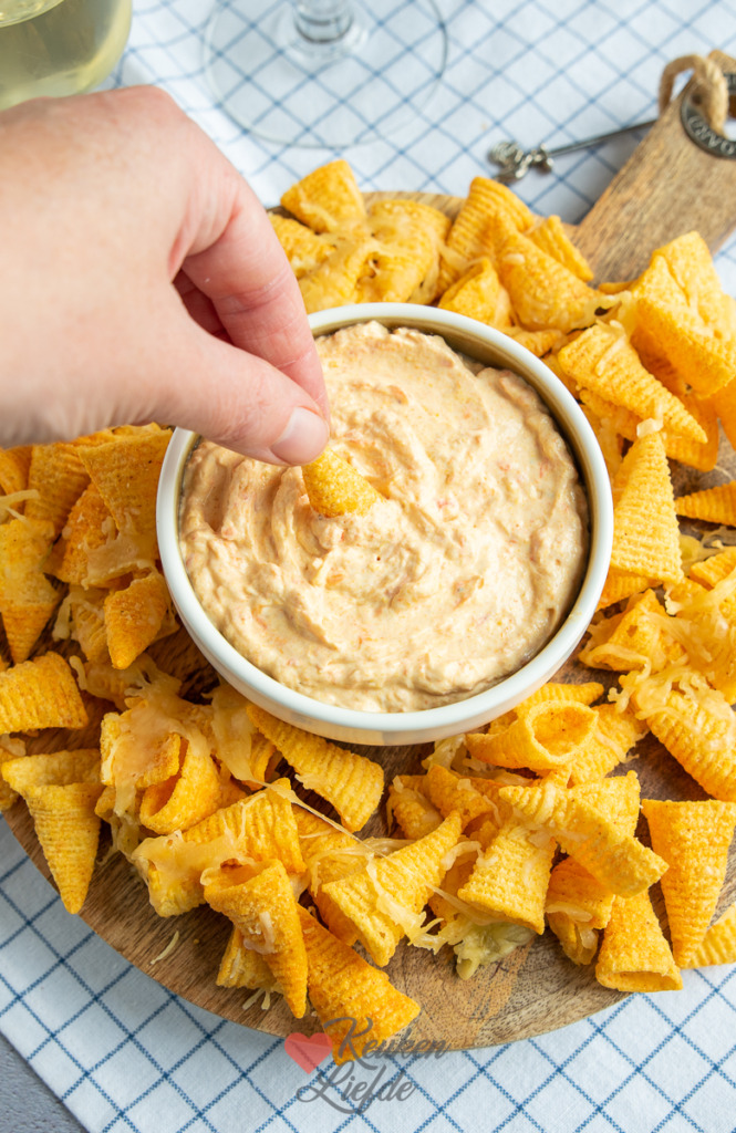 Een heerlijk hapje voor op de borrelplank is deze geroosterde puntpaprika roomkaasdip. Een hele mond vol maar o zo makkelijk om te maken. Zoete puntpaprika’s zijn al lekker zoet van zichzelf maar als je ze roostert in de oven worden ze nóg zoeter. Vermengd met zachte roomkaas een heerlijke dip voor bijvoorbeeld Bugles nachos (Bugles bestrooid met geraspte kaas en laten smelten in de oven) of knapperige rauwkost. Zie ook onderstaande tip.