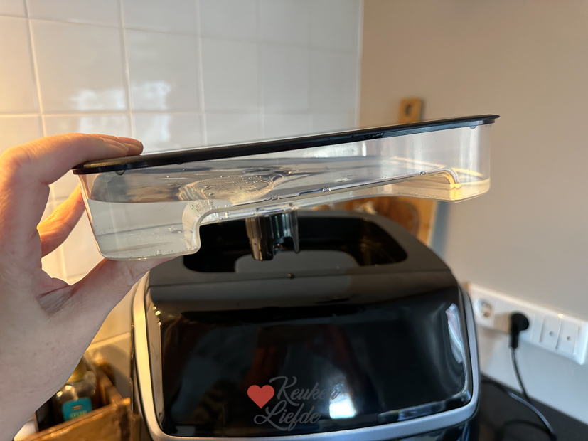 Voor de stoomfunctie vul je het bovenste bakje met water