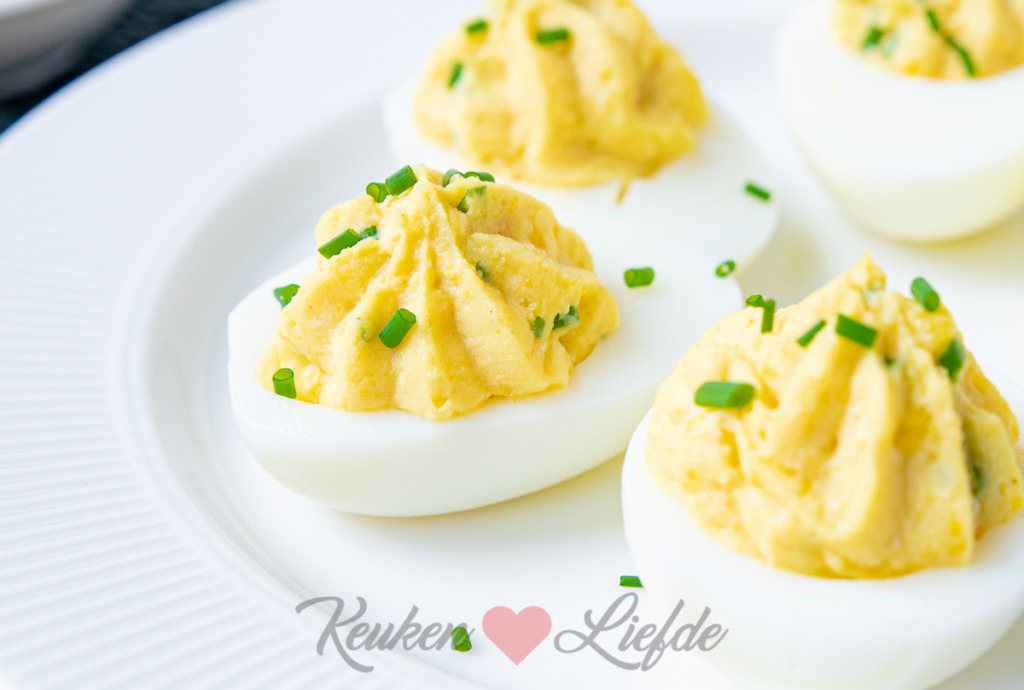Een heerlijk en eenvoudig basisrecept voor gevuld ei met een vleugje kerrie en bieslook. Deze klassieker mag niet ontbreken op een verjaardag of feestje. Hij stelt nooit teleur!