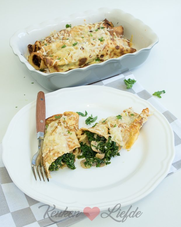 Onlangs had Johan pannenkoeken gebakken en omdat er behoorlijk wat over waren vroor ik ze in. Een pannenkoek op zijn tijd kan ik wel waarderen, maar nog liever eet ik een gevulde, hartige pannenkoek. Zo maakte ik eerder al pannenkoeken gevuld met spinazie, ricotta en ham. Zó lekker! Het recept vind je hier.