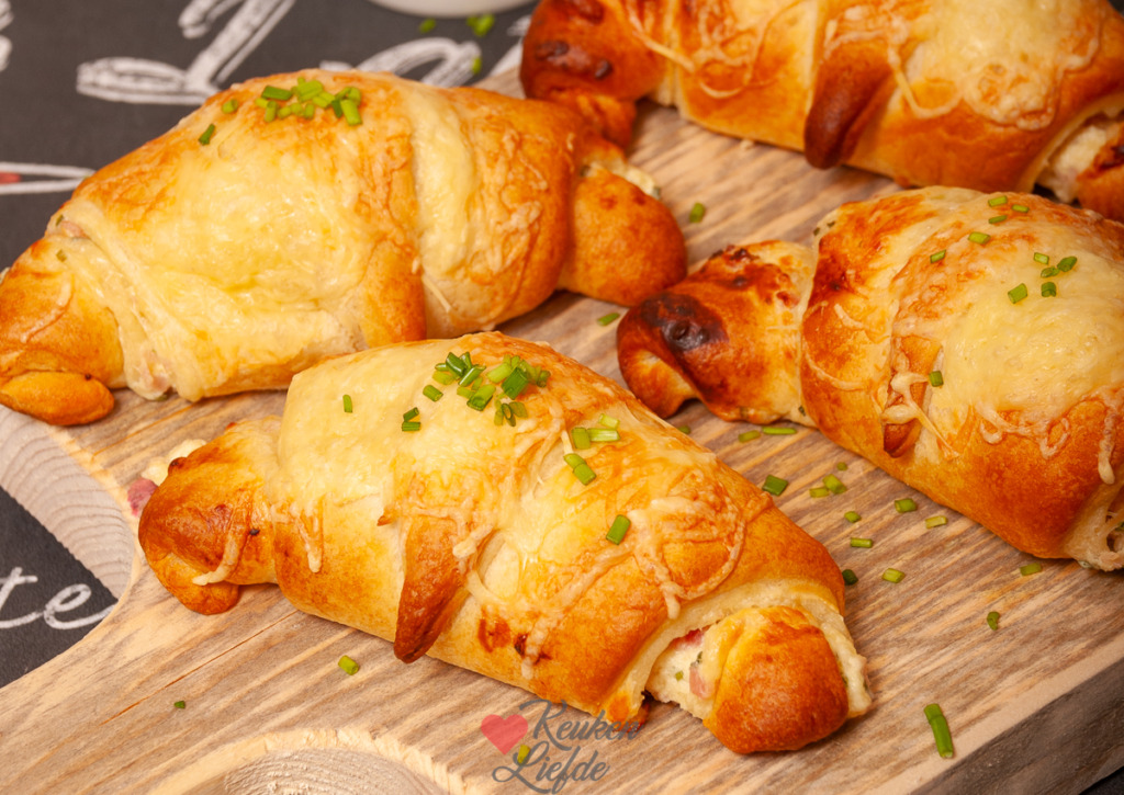 Ik ben dol op ham-kaas croissants, of ze nu van de bakker komen of uit de supermarkt. Thuis warm ik ze even op in de oven – heerlijk! Maar op zondagochtend maak ik ze het liefst zelf. Met een blikje koelvers croissantdeeg is dat heel eenvoudig. Ik vul ze met een romige ham-kaasvulling en bak ze vers af in de oven. Moet je eens kijken hoe snel iedereen dan beneden is. 😁
