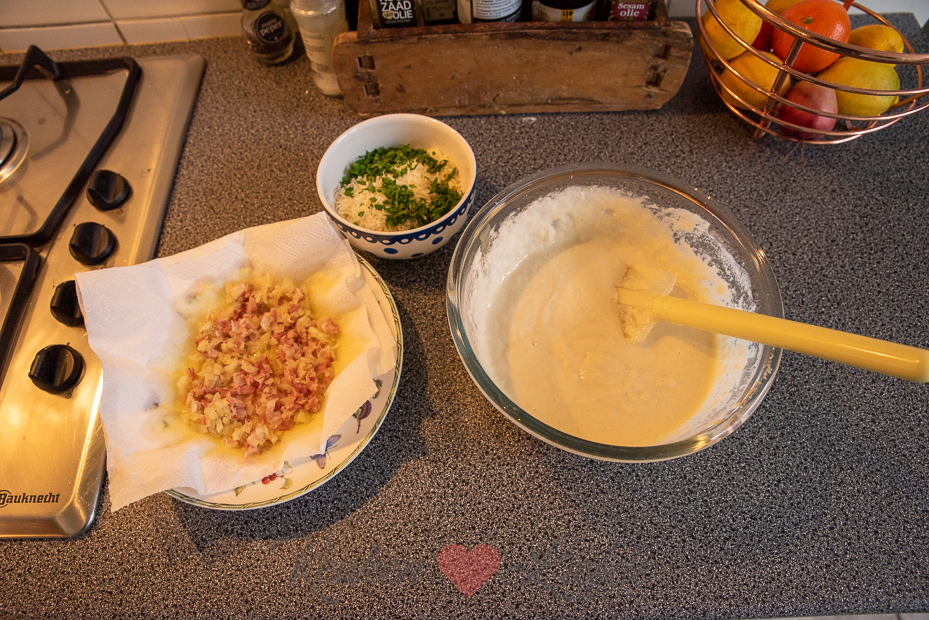 Maak een theedoek licht vochtig met warm water en dek de beslagkom ermee af. Laat de kom op een warme en tochtvrije plek minimaal een uur rijzen, of tot het deeg verdubbeld is in volume.