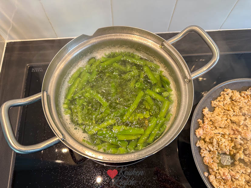 - 400 g sperziebonen, uiteinden eraf en gehalveerd