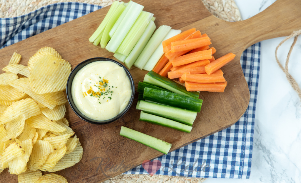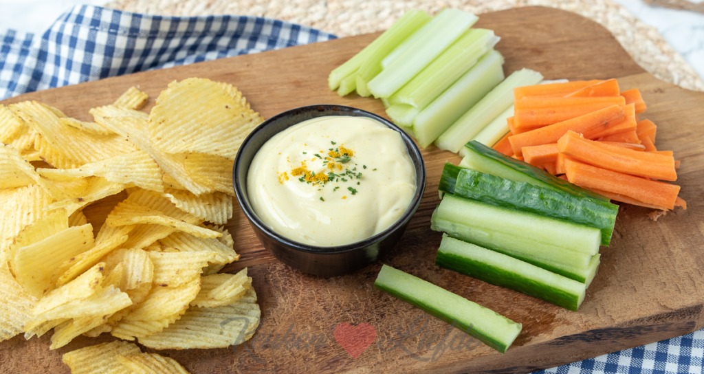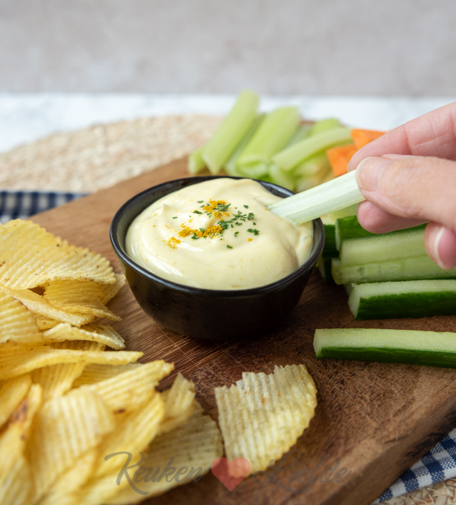 Een heerlijke dipsaus met zachte kerriesmaak en een vleugje zoete gembersiroop voor op de borrelplank. Lekker met een chippie, of wat knapperige rauwkost!