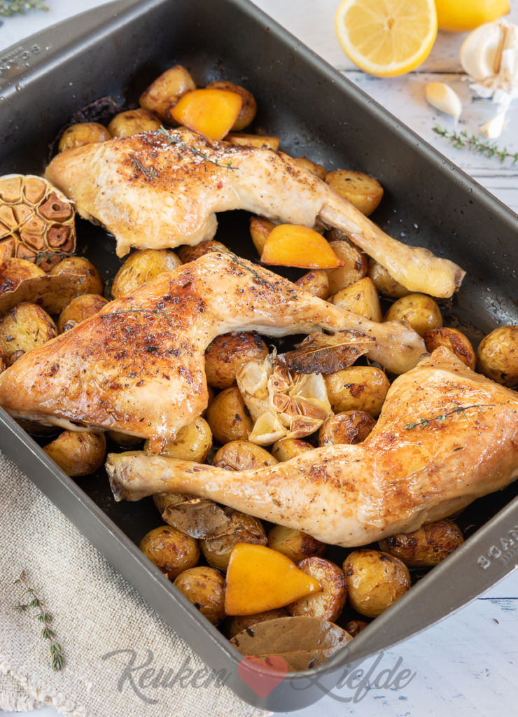 - 1 hele bol knoflook, overlangs doormidden gesneden