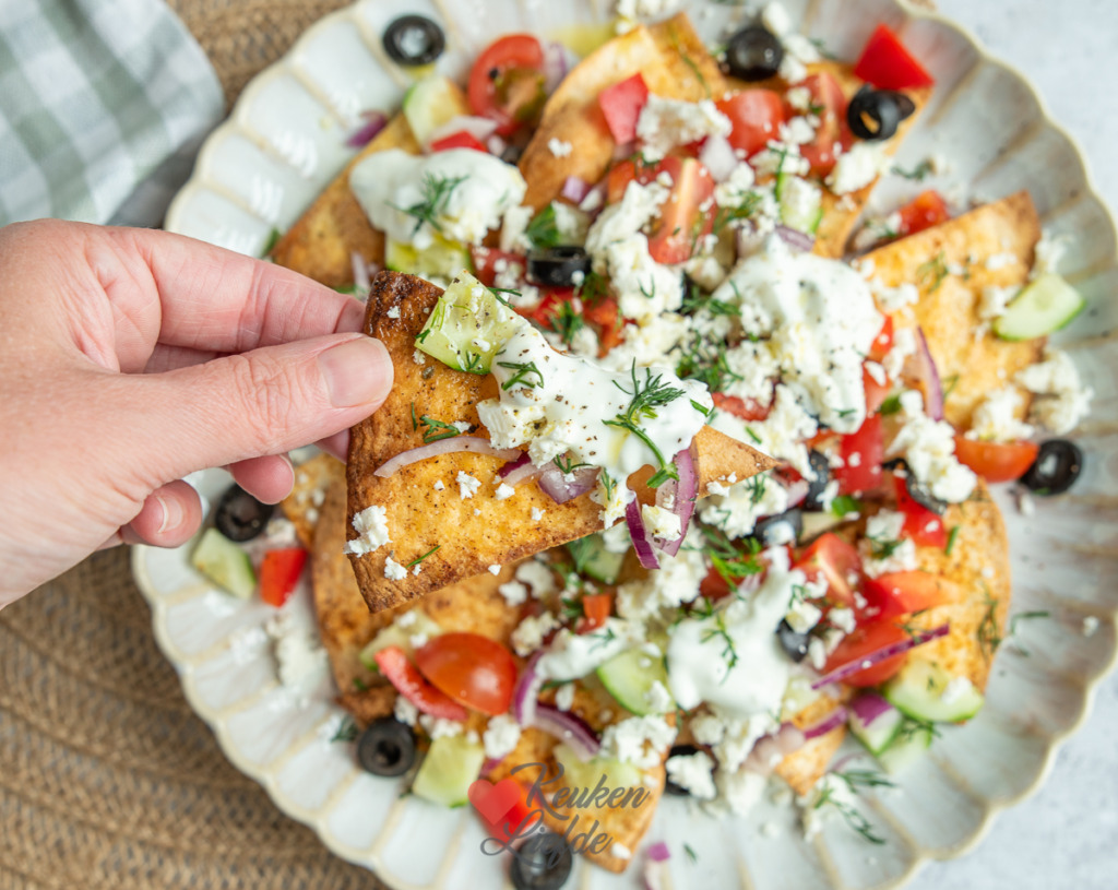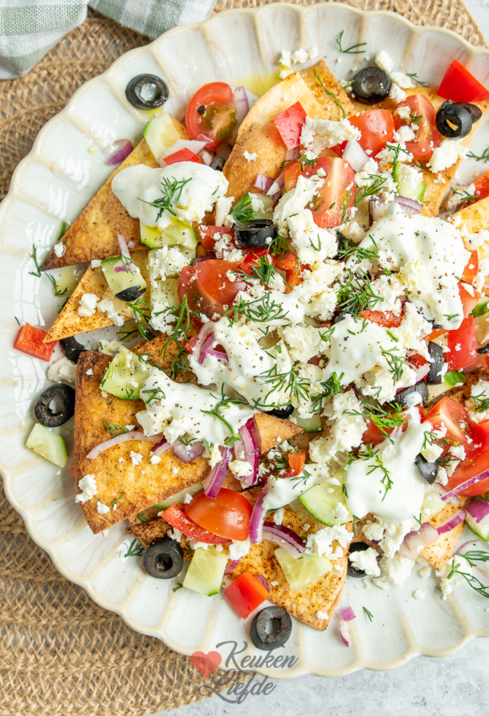 Een heerlijk gerecht vind ik het, loaded nacho’s. Op Keukenliefde vind je de klassieke loaded nacho’s met gehakt en kaas maar ook leuke varianten zoals deze loaded nacho’s Griekse stijl. Zelfgemaakte tortillachips bedekt met Griekse smaken zoals komkommer, tomaat, feta en romige tzatziki. Wie maak je daar nu niet blij mee!