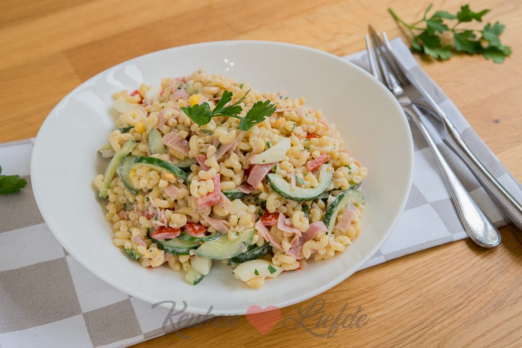 Als ik even niet weet wat ik op tafel moet zetten, dan maak ik macaronisalade. Heerlijk als lunchgerecht, als hoofdgerecht — eventueel met wat knapperig stokbrood en kruidenboter erbij —, als bijgerecht tijdens de barbecue, of doe het in een bakje en neem mee naar een zomerse picknick in het park!