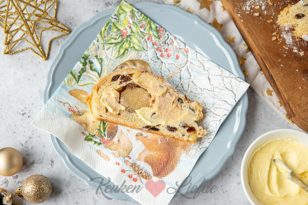 Hoi Petra, je kunt de amandelspijs even loskneden met een beetje losgeklopt ei, maar dit hoeft niet per se. Uiteraard kun je de rozijnen van te voren laten wellen in een beetje heet water of drank. Dan worden ze extra sappig en smakelijk. Ik zet het er nog even bij. 🙂