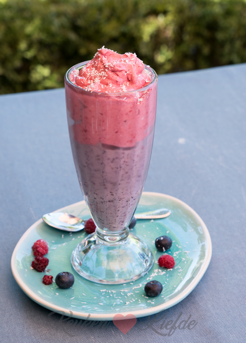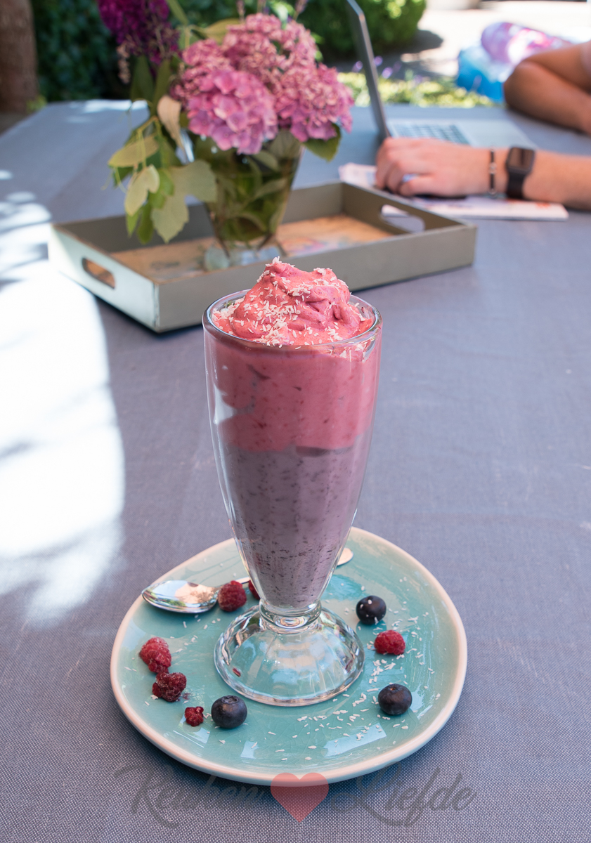 Als het ijs iets te dun is kun je het enkele minuten in de vriezer zetten. Te dik, voeg wat extra kokosmelk toe.