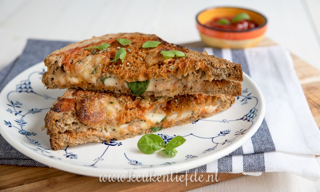 die.tomatensaus erop. Bij mij wordt de tosti in de oven gauw nogal droog.