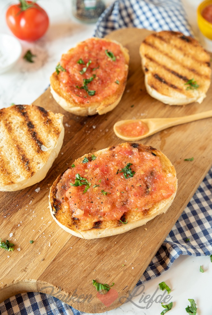 Mijn lievelings broodje alleen hier in Spanje worden de tomaten geraspt en gooien we de schol weg.