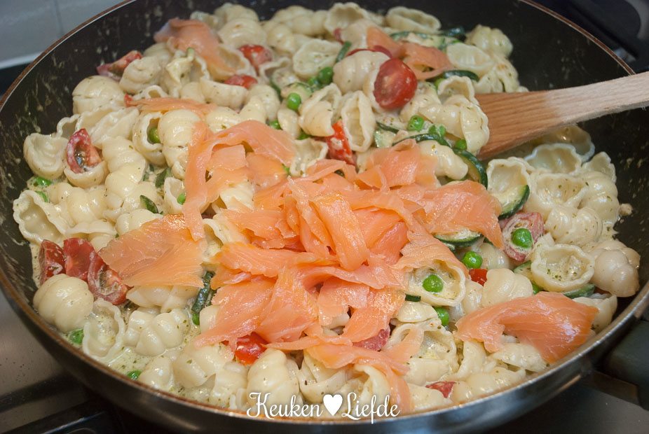 - 150 g gerookte zalm, in stukken gescheurd
