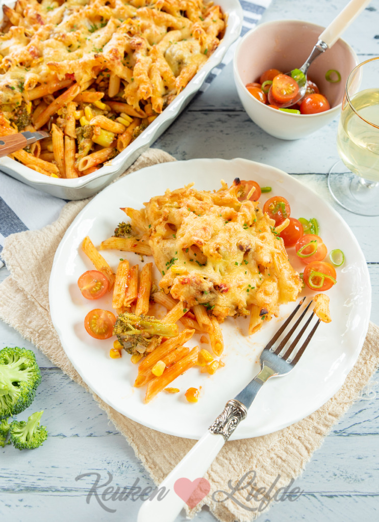 - 1 grote broccoli (ca. 500 g), in kleine roosjes, stronk geschild en in plakjes)